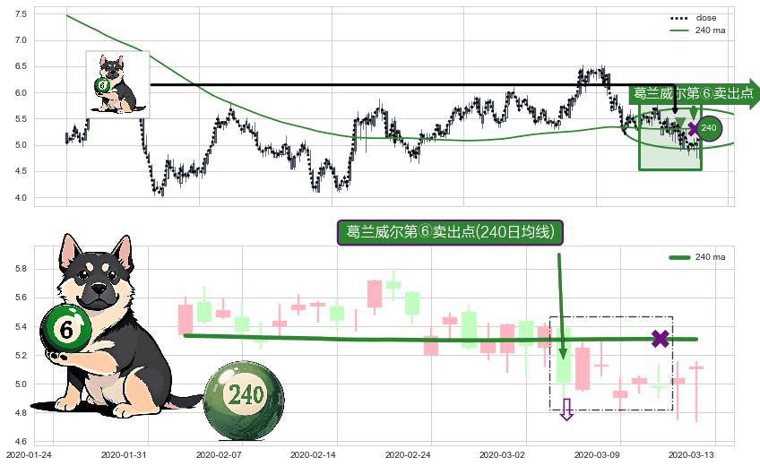 ⚀ 2020-03-04-日显现 葛兰威尔均线 240日均线 第⑥卖出点 走势反转见顶信号,后市看跌,卖出信号