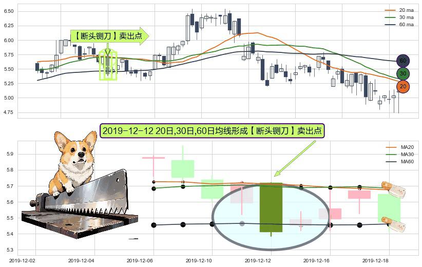 ⚀ 2019-12-12日显现 20日-30日-60日均线 【断头铡刀】卖出点 看空信号,后市看跌,卖出