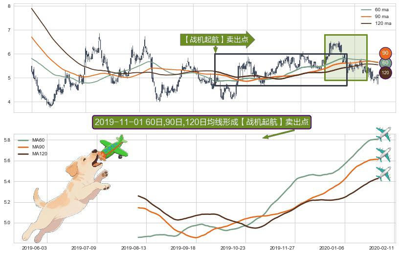 ⚀ 2019-08-07日-2020-01-30日显现 60日-90日-120日均线 【战机起航】卖出点 看空信号,后市看跌,卖出