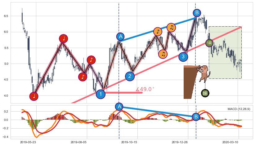 ➣ AI预测: 假定反转启动后, 第❸目标位置(2020-07-13, 4.95)
