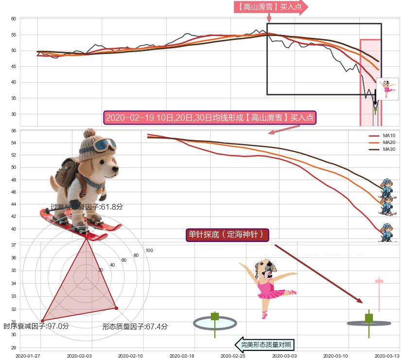 从2020-01-17至2020-03-13,共包含39个交易日,阶段股价下跌-45.50%,阶段股价变动位移路程比: 1 : 2,2020-03-09向↘︎形成缺口,跳空下跌-16.48%˚