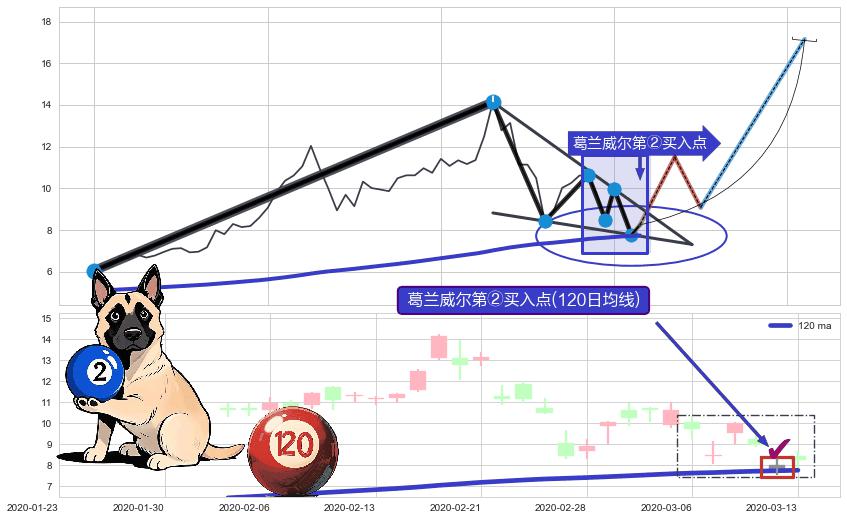 ➢ 收盘价(2020-03-10: 9.98 )→回踩→第一根k线低点(2020-03-06: 9.28 )