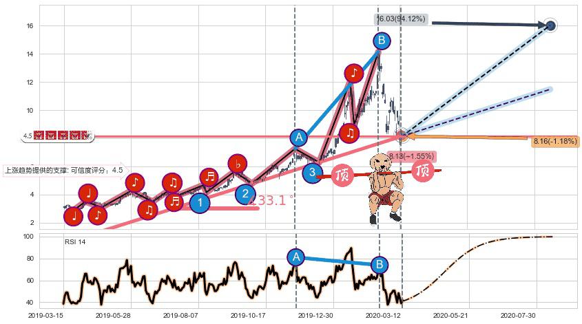 ➢ 预测:2020-03-16,【小幅回撤】稳定目前上涨趋势的前提下,预测价格:8.16