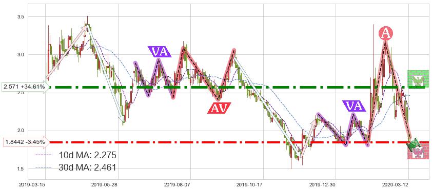 ♘ 阻力价格位2.571,可信任强度91.29%,距离最后交易2020-03-13形成的收盘价格1.9100相差 +34.61%