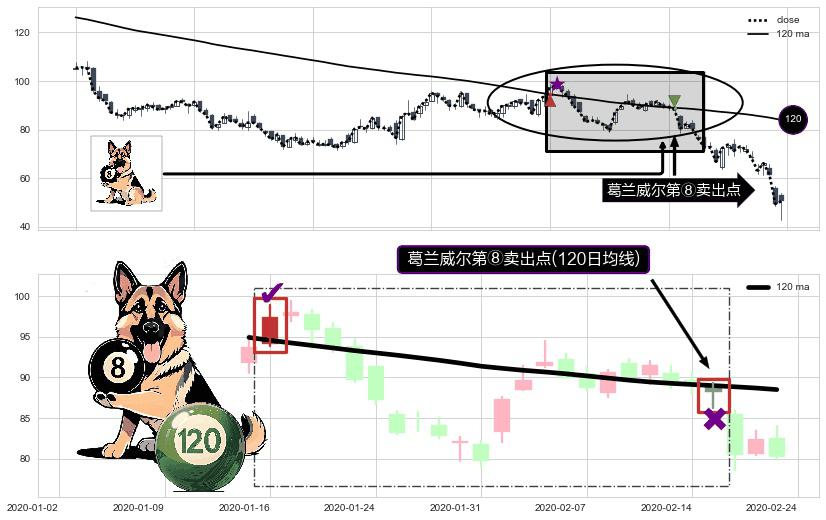 ⚁ 120日均线 第⑧卖出点 属于 均线服从 信号,属于趋势运行的【常态】即信号期望为下降趋势的中继