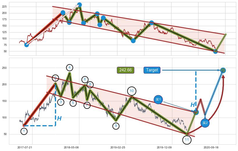 ➣ 最小中继整理涨幅→𝐇: 126.45 (𝐇旗杆的长度:旗杆起点→顶点)