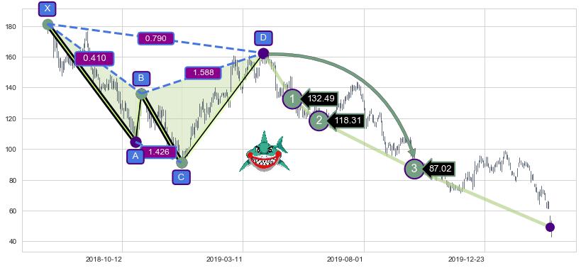 ➣ 已达成看跌【鲨鱼】形态全部的预期目标