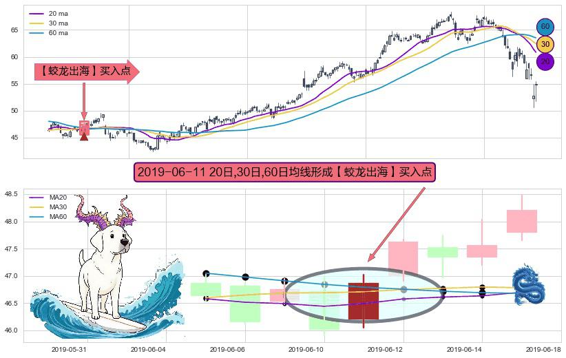 形态多维评估: ⚀ 2019-06-11日显现 20日-30日-60日均线 【蛟龙出海】买入点 看多信号,后市看涨,买入