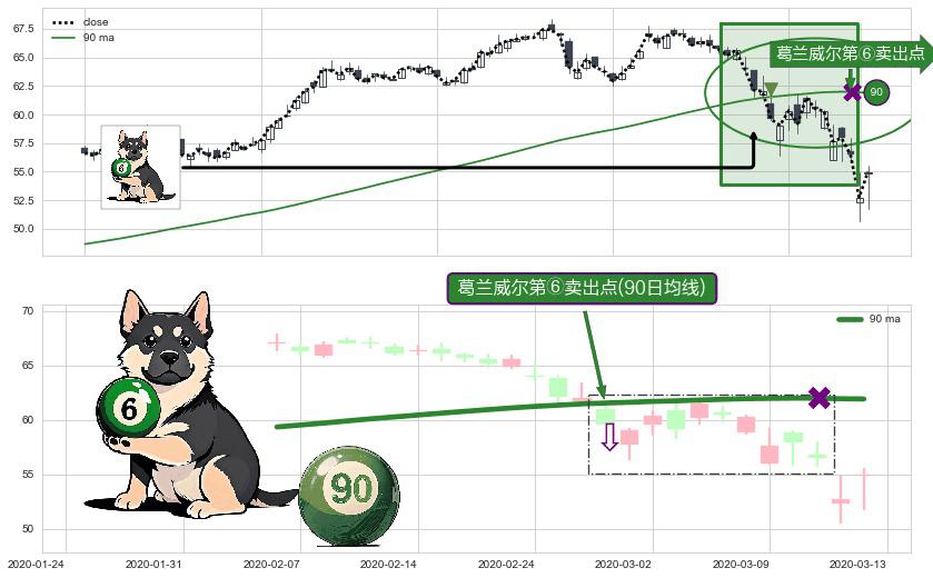 形态多维评估: ⚀ 2020-02-27-日显现 葛兰威尔均线 90日均线 第⑥卖出点 走势反转见顶信号,后市看跌,卖出信号