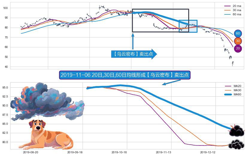 形态多维评估: ⚀ 2019-09-20日-2019-12-24日显现 20日-30日-60日均线 【乌云密布】卖出点 看空信号,后市看跌,卖出