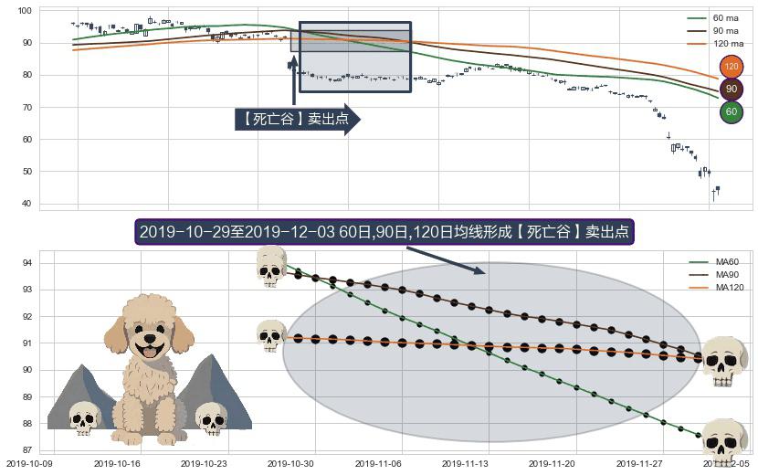 形态多维评估: ⚀ 2019-10-30-日至2019-12-03-日显现 60日-90日-120日均线 【死亡谷】卖出点 看空信号,后市看跌,卖出