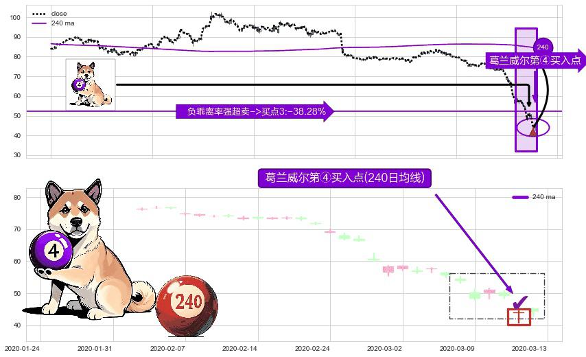 形态多维评估: ⚀ 2020-03-12-日显现 葛兰威尔均线 240日均线 第④买入点 下降趋势均值回复的短线反弹信号,后市看涨,买进信号