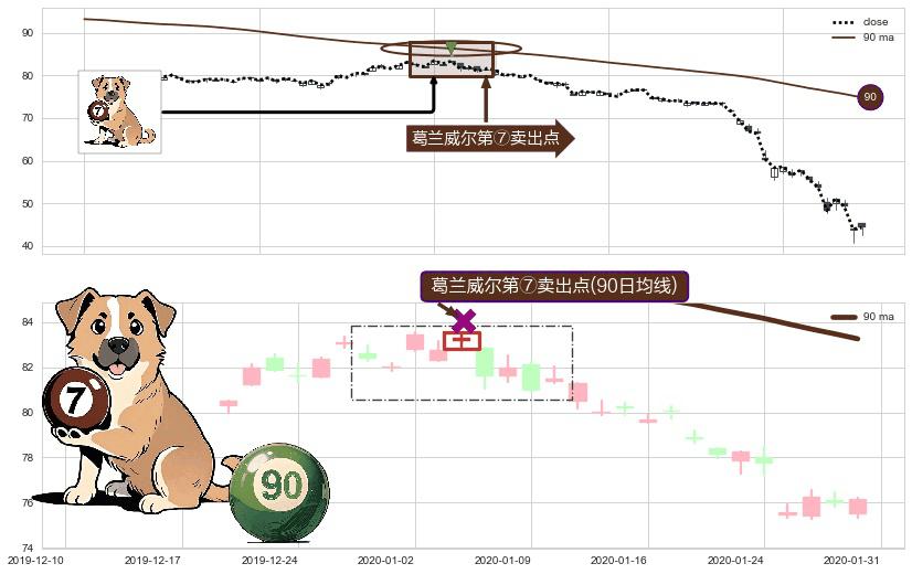 形态多维评估: ⚀ 2020-01-06-日显现 葛兰威尔均线 90日均线 第⑦卖出点 下降趋势的中继信号,后市看跌,卖出信号