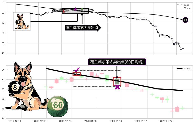 形态多维评估: ⚀ 2020-01-09-日显现 葛兰威尔均线 60日均线 第⑧卖出点 下降趋势的中继信号,后市看跌,卖出信号