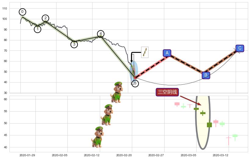 | 2 🅚:【高山滑雪】买入点 ➕ 🌊:波浪理论猜想下跌浪5已形成,猜想后续形成abc反弹上涨(均值回复) ☞ 看多信号 ⇥ 【均线】交织【图形】⇥ 综合量化分数: 52 | > |