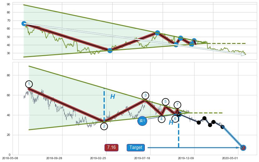 ➢ AI预测: 假定反转启动后, 第❷目标位置(2020-10-28, 42.60)