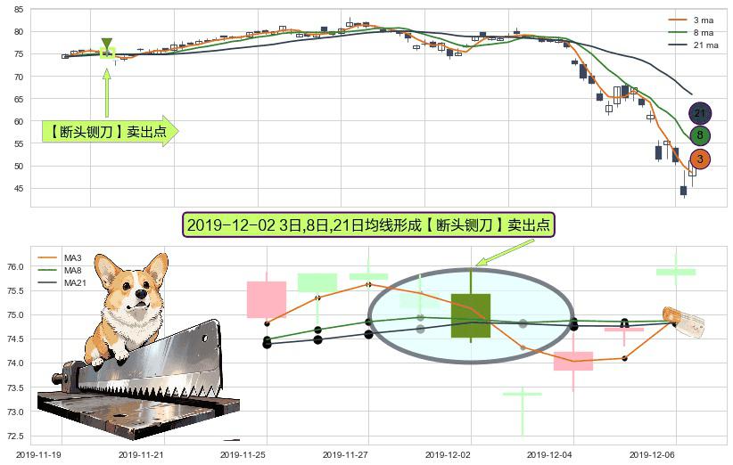 形态多维评估: ⚀ 2019-12-02日显现 3日-8日-21日均线 【断头铡刀】卖出点 看空信号,后市看跌,卖出