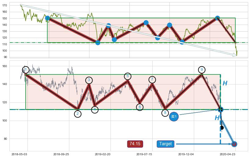 ➢ 【已确认突破】最后价格:99.64与最小【整理】第一目标价格→(2020-04-23: 74.15 )相较: 下跌空间【中等】