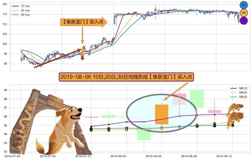 ⚀ 2019-08-06日显现 10日-20日-30日均线 【鱼跃龙门】买入点 看多信号,后市看涨,买入