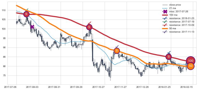 ⚃ 在破位点附近ma走势明显平稳迹象,稍后的走势中ma下垂迹象也出现,信号【可信度中等偏上】