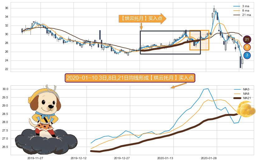 ⚀ 2019-12-13日-2020-02-05日显现 3日-8日-21日均线 【烘云托月】买入点 看多信号,后市看涨,买入