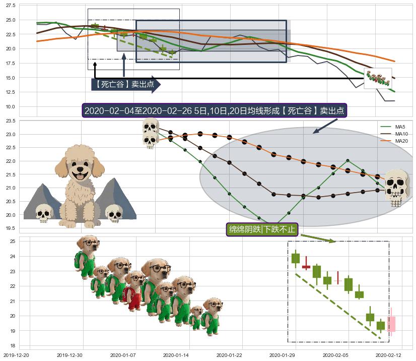 | 4 🅚:三只乌鸦 ➕ 🎢:【死亡谷】卖出点均线组合卖出点信号形成后,猜想后续破位下跌,沿着向下的尖头三角下跌 ☞ 看空信号 ⇥ 【均线】交织【🅚线】⇥ 综合量化分数: 49 | > |