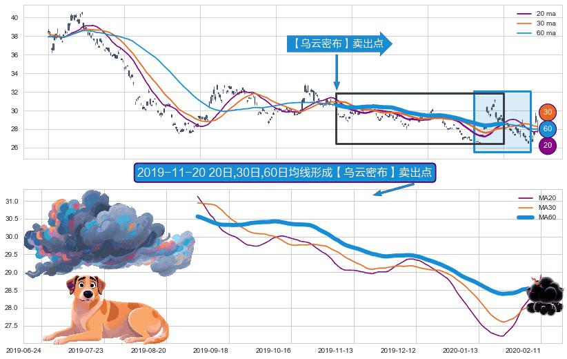 形态多维评估: ⚀ 2019-09-04日-2020-02-10日显现 20日-30日-60日均线 【乌云密布】卖出点 看空信号,后市看跌,卖出