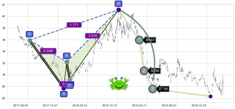 ➣ 已完成【螃蟹】形态起点X: 2017-08-11, 终点D: 2018-10-18, 共300交易日