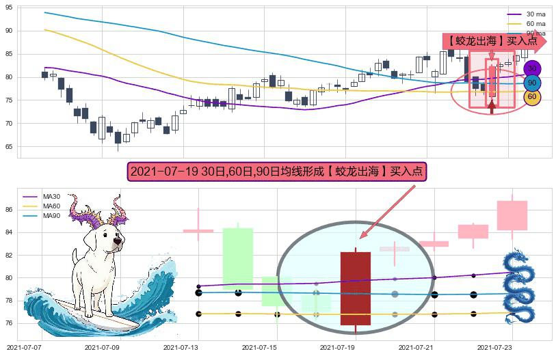 形态多维评估: ⚀ 2021-07-19日显现 30日-60日-90日均线 【蛟龙出海】买入点 看多信号,后市看涨,买入