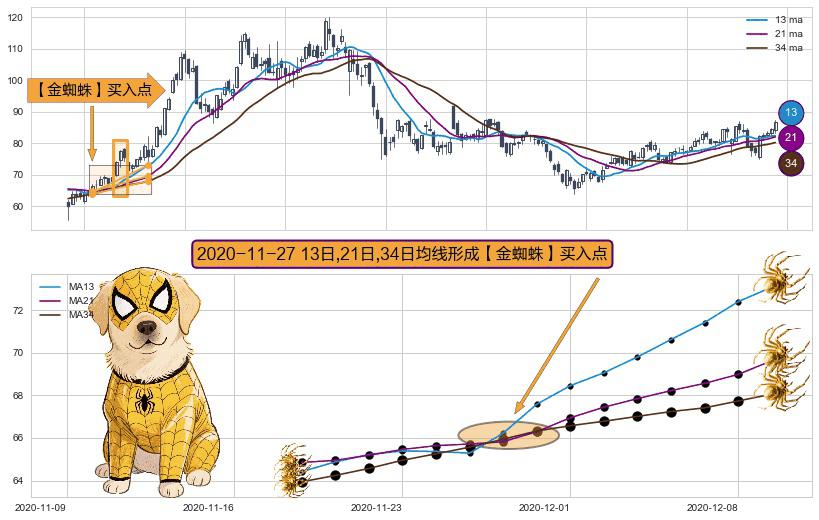 形态多维评估: ⚀ 2020-11-27日显现 13日-21日-34日均线 【金蜘蛛】买入点 看多信号,后市看涨,买入