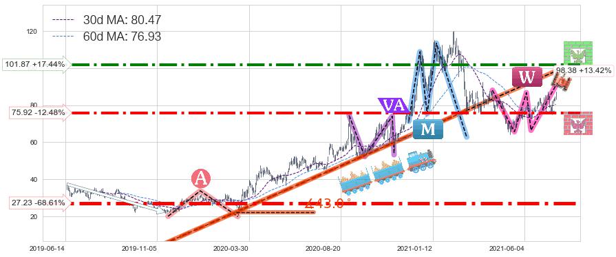♘ 阻力价格位101.87,可信任强度70.51%,距离最后交易2021-07-23形成的收盘价格86.74相差 +17.44%