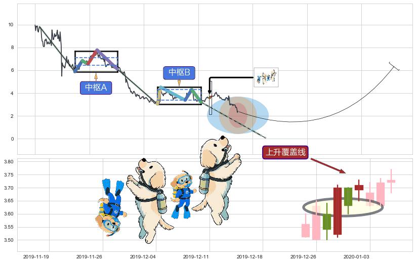 ➣ 【未完成】缠论 起点:2018-10-01, 完成第1中枢A,完成第2中枢B,到达2020-03-13