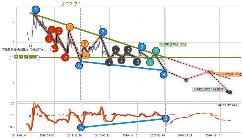 ➣ 预测:2020-10-21,【试探阻力】稳定目前下跌趋势的前提下,预测价格:0.5582