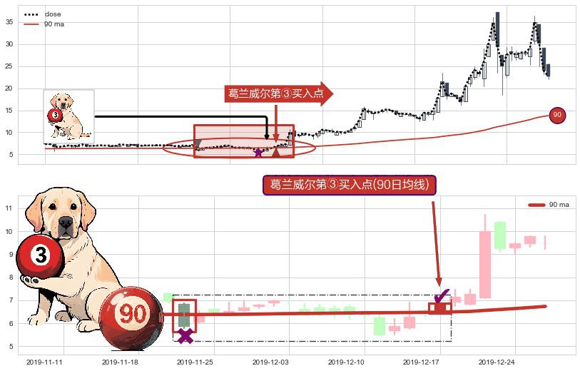 ⚀ 2019-12-17-日显现 葛兰威尔均线 90日均线 第③买入点 上升趋势的中继信号,后市看涨,买进信号