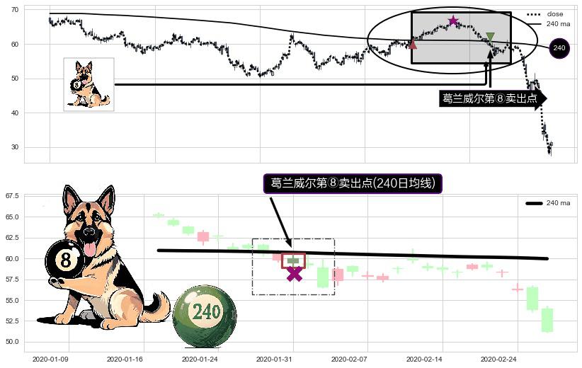 形态多维评估: ⚀ 2020-01-31-日显现 葛兰威尔均线 240日均线 第⑧卖出点 下降趋势的中继信号,后市看跌,卖出信号