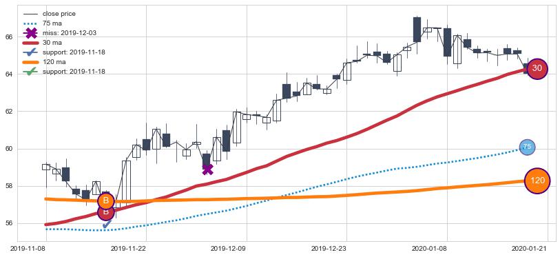 上涨趋势2019-11-08-2020-01-21,均线120, 30确认关键支撑1处