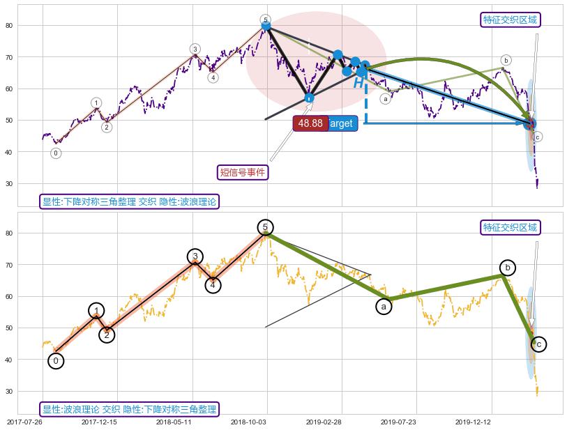 ➢ 下降【对称】三角形整理综合量化分数: 49.50 【中性】