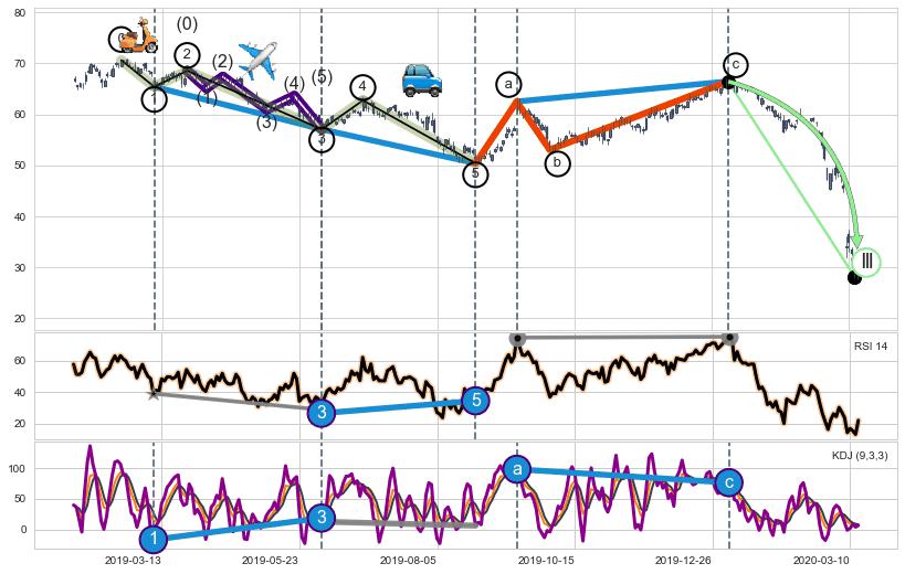 ➣ a,c调整浪RSI走势未出现明显背离