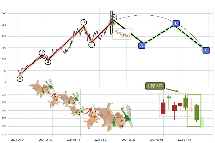 | 4 🅚:看跌(高位倒锤头)流星线 ➕ 🌊:波浪理论猜想上涨浪5已形成,猜想后续形成回调abc下跌(均值回复) ☞ 看空信号 ⇥ 【🅚线】交织【图形】⇥ 综合量化分数: 46 | > |