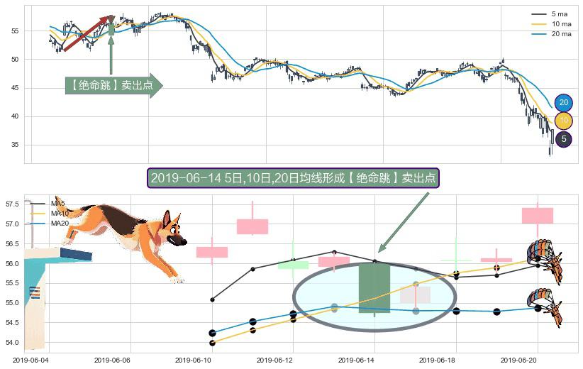 形态多维评估: ⚀ 2019-06-14日显现 5日-10日-20日均线 【绝命跳】卖出点 看空信号,后市看跌,卖出