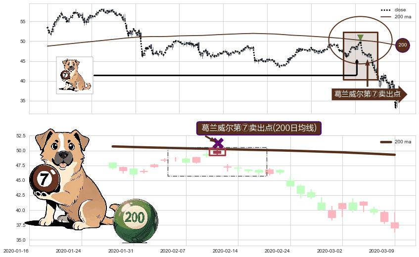 形态多维评估: ⚀ 2020-02-12-日显现 葛兰威尔均线 200日均线 第⑦卖出点 下降趋势的中继信号,后市看跌,卖出信号