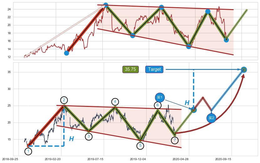 ➣ 最小中继整理涨幅→𝐇: 11.99 (𝐇旗杆的长度:旗杆起点→顶点)