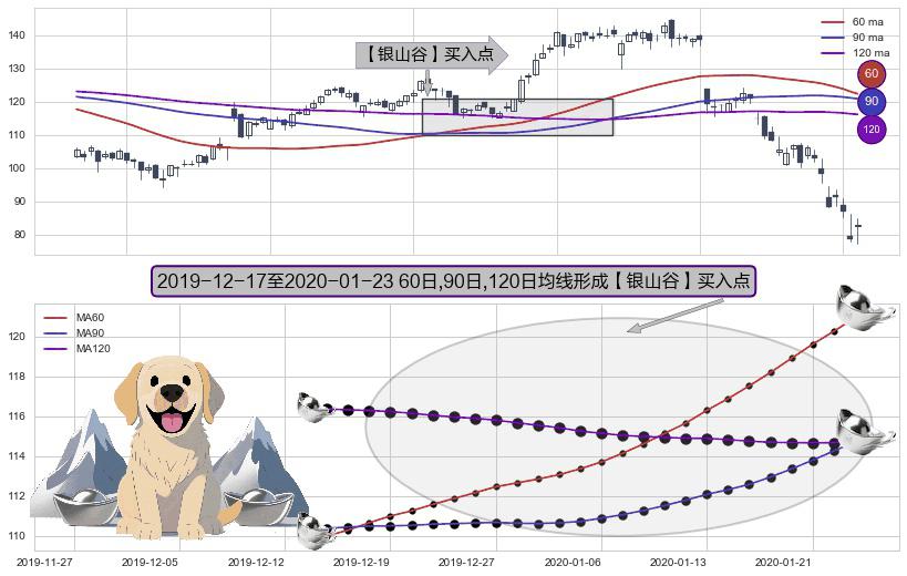 ⚀ 2019-12-18-日至2020-01-23-日显现 60日-90日-120日均线 【银山谷】买入点 看多信号,后市看涨,买入