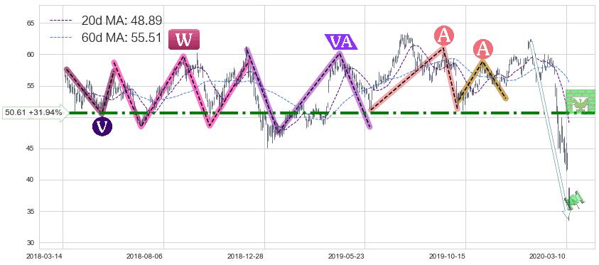 ♘ 阻力价格位50.61,可信任强度85.00%,距离最后交易2020-03-13形成的收盘价格38.36相差 +31.94%