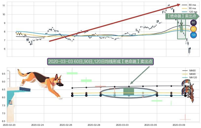 形态多维评估: ⚀ 2020-03-03日显现 60日-90日-120日均线 【绝命跳】卖出点 看空信号,后市看跌,卖出