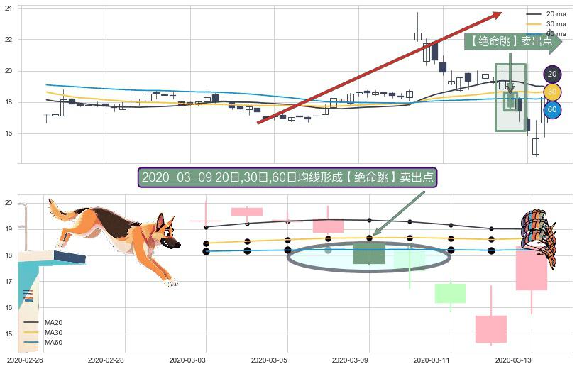 ⚀ 2020-03-09日显现 20日-30日-60日均线 【绝命跳】卖出点 看空信号,后市看跌,卖出