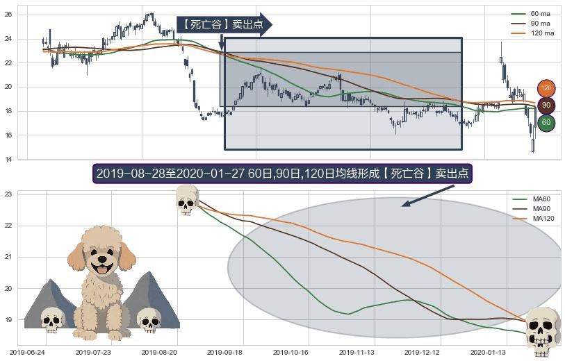 ⚀ 2019-08-29-日至2020-01-27-日显现 60日-90日-120日均线 【死亡谷】卖出点 看空信号,后市看跌,卖出