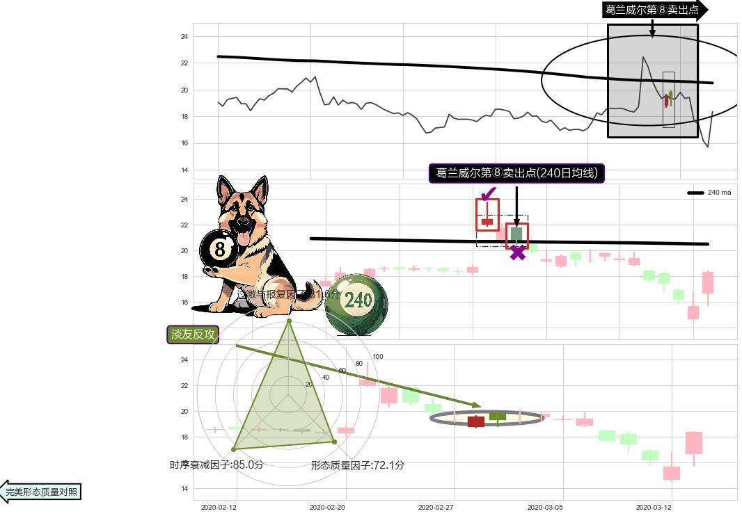 | 5 🅚:吊颈线(上吊线) ➕ 🎢:葛兰威尔第⑧卖出点卖出点信号形成后,猜想后续持续下行(趋势跟踪) ☞ 看空信号 ⇥ 【均线】交织【🅚线】⇥ 综合量化分数: 49 | > |
