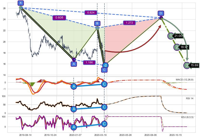 ➣ D点拟合预测价格24.29,距离最后交易收盘价格18.35相差 +32.36%