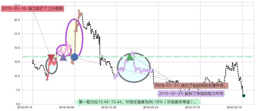 ♘ 阻力价格位13.44,可信任强度86.18%,距离最后交易2020-03-13形成的收盘价格6.50相差 +106.72%